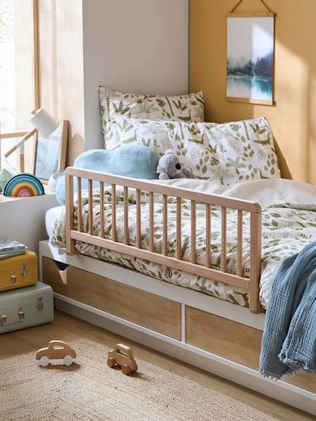 Le passage du lit à barreaux au lit de grand n’est pas toujours évident pour les enfants. Placée sur le côté du lit, cette barrière en bois évitera les chutes pendant la nuit. Elle se fixe solidement au sommier grâce à un système à vis. Les nuits des enfants (et des parents) sont alors bien plus sereines.