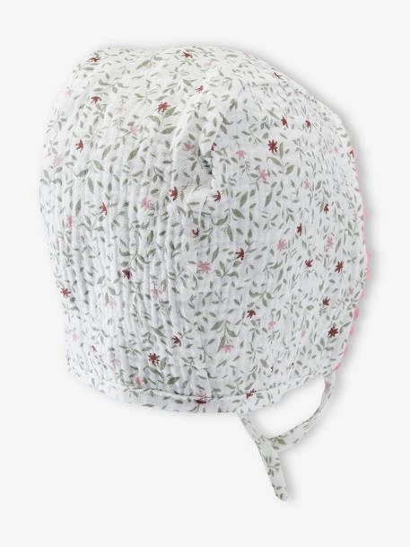 Bonnet forme capuche bébé fille en gaze 100% coton.