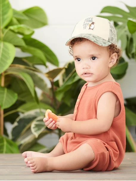 On adore le look de cette casquette avec son imprimé jungle, c’est une façon très cool de protéger bébé du soleil !