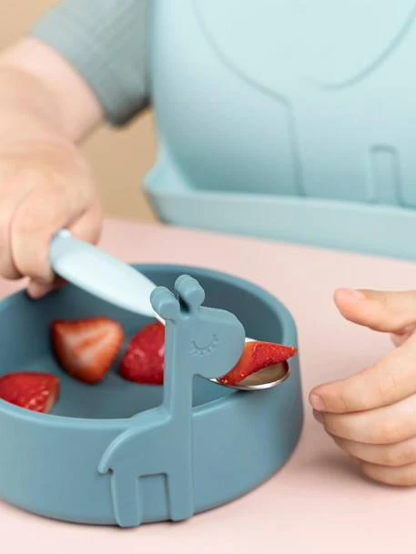 – base avec bac évasé bien pratique pour recueillir les aliments que l’enfant laisse s’échapper lors de l’apprentissage du repas en autonomie - Cuillère :
