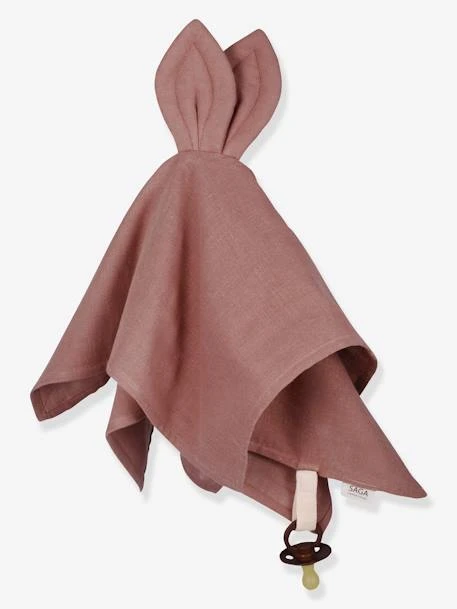 Et voici un doudou qui répond à de nombreuses exigences ! Deux épaisseurs de tissu sont cousues sur la robe, ce qui vous permet de l’utiliser comme un lange et deux oreilles souples sont cousues sur le dessus que bébé peut mordre. Enfin, la robe est munie d’une sangle où vous pouvez attacher la tétine afin de toujours savoir où elle se trouve.