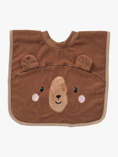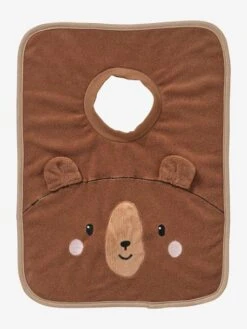 Un grand bavoir qui protège bien les vêtements durant les repas ! Décoré d’une petite bouille d’animal avec oreilles volantes et d’un joli biais imprimé, votre enfant va adorer l’enfiler !