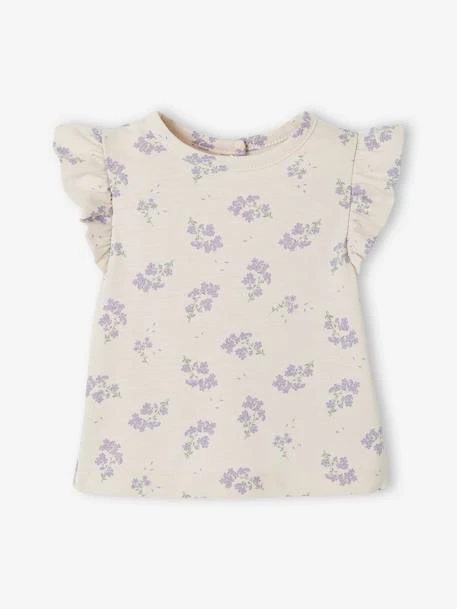 Un col en broderie anglaise sur un T-shirt uni + un T-shirt volanté au délicat imprimé, un beau duo à offrir pour des petites filles romantiques.