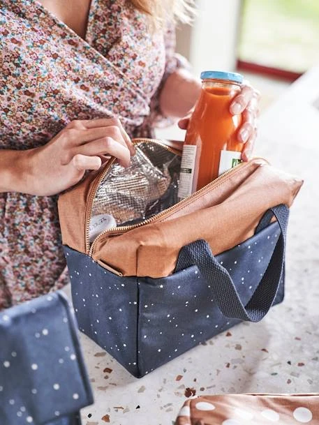 Lunch box bicolore en coton enduit, doublure PET.