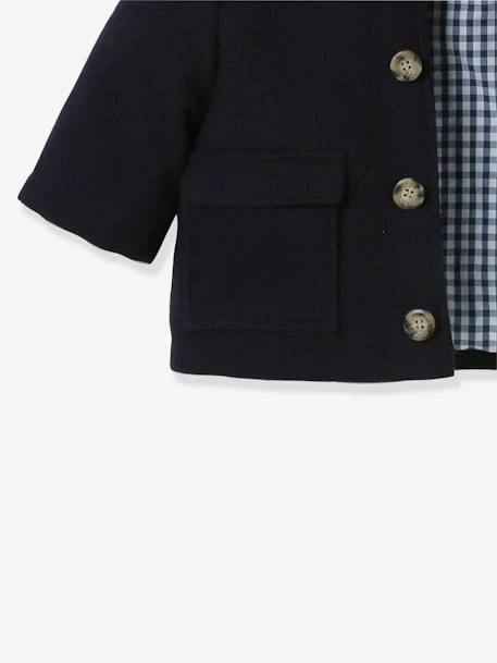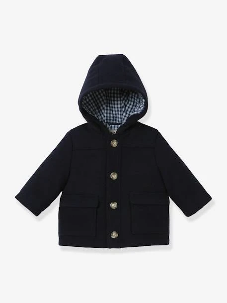 Notre manteau reprend les codes du duffle-coat avec l’élégance de notre petite marque française. Réalisé dans un drap de laine de qualité et doublé d’un tissu à carreau doux , il protège efficacement bébé du froid.