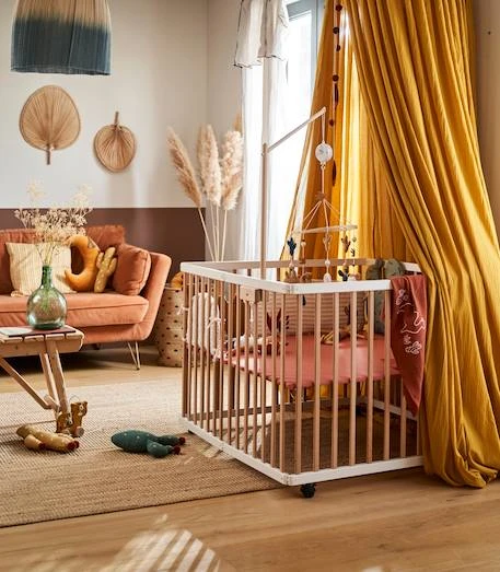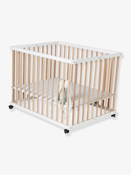 Véritable espace d’éveil conçu pour les petits espaces (se plie facilement pour un gain de place dans votre pièce), ce parc accompagne aussi bébé dans ses voyages pour lui permettre de jouer et de s’éveiller en toute sécurité. Le petit plus : possibilité de fixer des roulettes (founies) sous les pieds pour faciliter le déplacement dans la pièce.