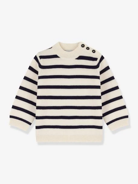 Pull bébé en laine et coton rayé PETIT BATEAU 55% laine, 45% coton.