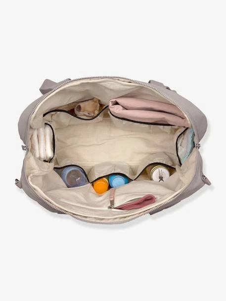 - A l’intérieur, 1 poche zippée pour les petits objets et des poches plates ou élastiquées pour organiser le rangement des affaires de bébé