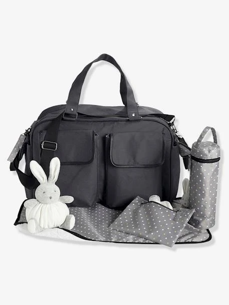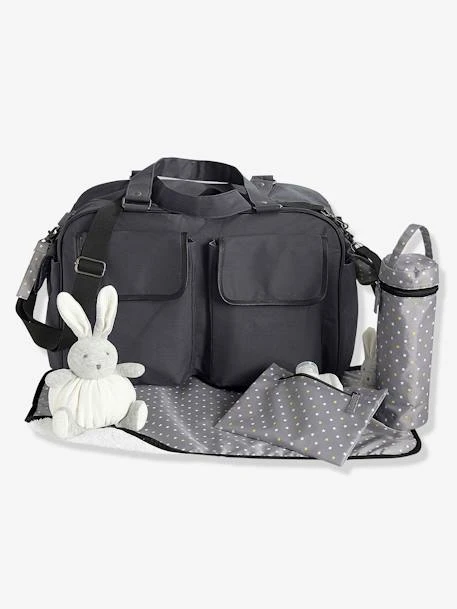 - EQUIPEMENT : porte-clés, porte-biberon isotherme, pochette zippée assortie (21,5 x 16 cm) et tapis à langer
