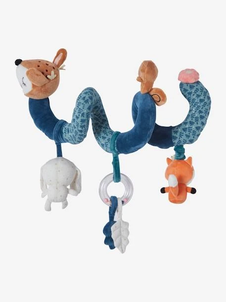- Spirale avec 4 jouets : un écureuil sur le dos, un lapin, un anneau à billes, un renard vibrant