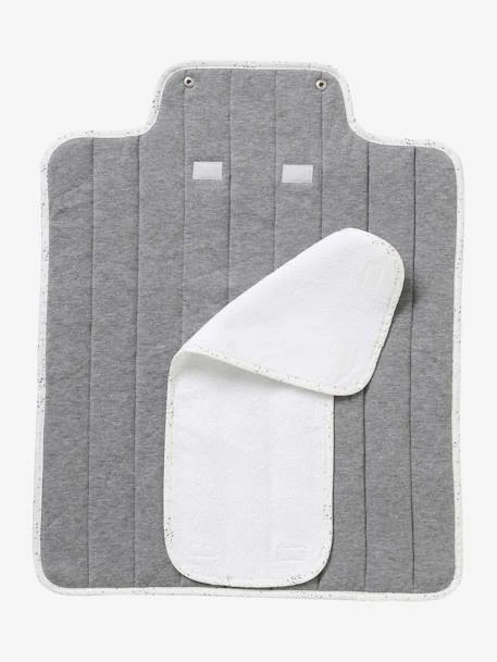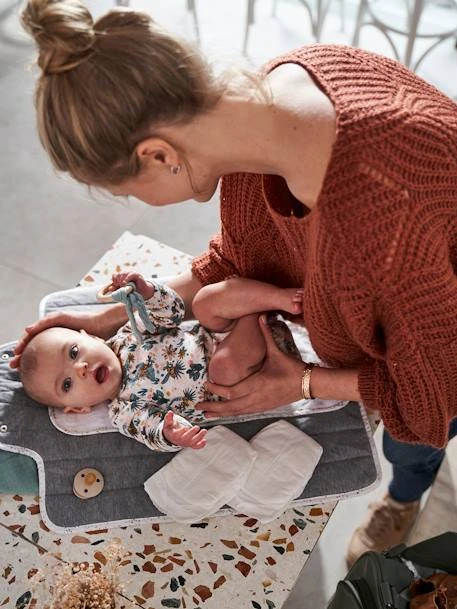 Voici un joli tapis à langer de voyage qui se replie comme une pochette et se glisse facilement dans le sac à langer ! Une fois déplié, il accueille bébé sur une serviette éponge amovible pour le moment du change !