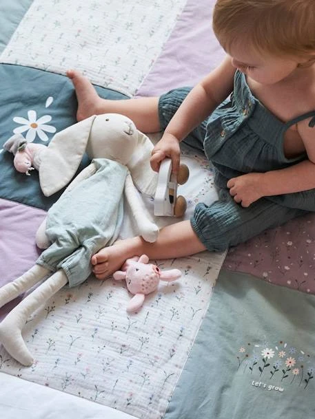 Un beau tapis de sol avec jeu de matières et de détails soignés ! Gaze de coton, popeline, fil doré, velours… tout ce qu’il y a de plus joli pour votre enfant est réuni sur notre couverture. Couvre-lit ou tapis de sol, à vous de personnaliser son utilisation pour entourer les petits de douceur.