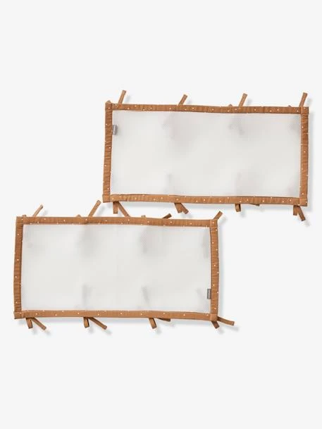 Réalisé avec une maille filet favorisant la circulation de l’air et un contour imprimé de triangles, ce tour de lit respirant composé de 2 parties à fixer sur les barreaux du lit bébé assurera à votre enfant des nuits paisibles et sécurisées.